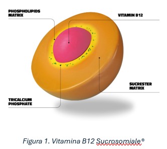 La vitamina B12 Sucrosomiale® è protetta da una matrice di fosfolipidi ed esteri saccarici degli acidi grassi. Questo innovativo delivery system protegge il composto dalla degradazione chimica, diminuendo le interazioni all’interno dell’ambiente gastrico e promuovendo il suo assorbimento e trasporto attraverso l’intestino; tutto ciò si traduce in un aumento della sua concentrazione all’interno dell’organismo. (7)