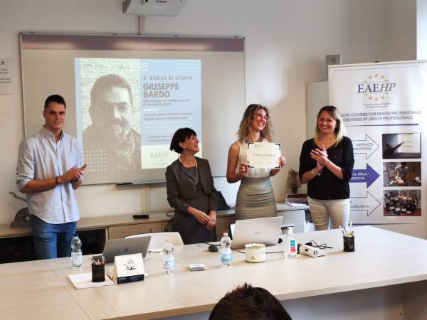 Le studentesse vincitrici, Elena Scaramelli dell’Università degli Studi di Milano e Beatrice Mento dell’Università degli Studi di Milano-Bicocca, hanno ricevuto la borsa di studio da Loredana Spagnolo, moglie di Giuseppe Bardo, in presenza di Diego Catania, successore di Bardo alla presidenza dell’Istituzione, di tutta la Commissione d’Albo dei TSRM e di un folto pubblico di studenti. Non è mancato un affettuoso ricordo di Giuseppe, tratteggiato dalla Presidente di Commissione d’Albo Carmela Galdieri: “Vorrei ringraziare chi non ha mai mollato nonostante la malattia e chi mi ha trasmesso tutta la sua esperienza e le sue conoscenze. Giuseppe ha consegnato la sua passione e i suoi insegnamenti a intere generazioni di TSRM, che a loro volta li condivideranno con le generazioni future”.
