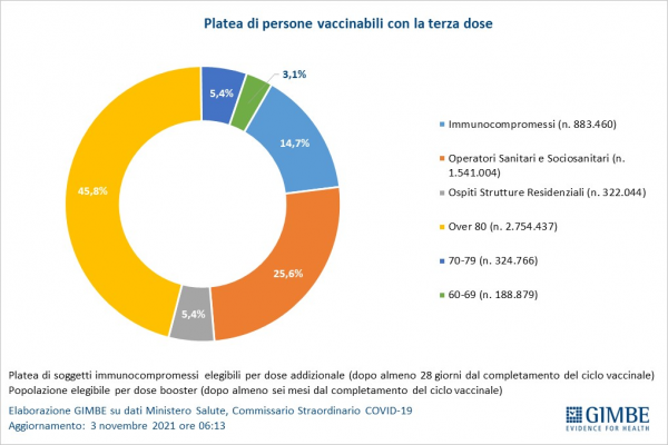 «Indipendentemente dal livello degli anticorpi circolanti – commenta Cartabellotta – questi dati confermano le indicazioni alla dose booster alle categorie a rischio identificate dal Ministero della Salute e la necessità di accelerarne la somministrazione». In particolare, la platea vaccinabile con la terza dose ad oggi è costituita da 883.460 persone per la dose aggiuntiva e da 5.131.130 persone per la dose booster, escluse quelle under 60 anni che hanno ricevuto il vaccino Johnson&Johnson, non ancora incluse negli Open Data sui vaccini anti-COVID-19).