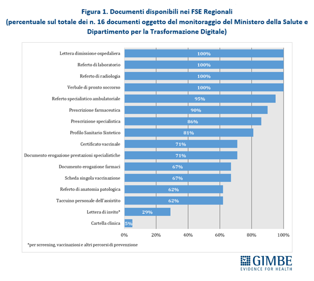 Documenti. Il Decreto del Ministero della Salute del 7 settembre 2023 ha definito i contenuti del FSE 2.0, ma ad oggi soltanto 4 documenti su 16 monitorati sul portale pubblico – lettera di dimissione ospedaliera, referti di laboratorio e di radiologia e verbale di pronto soccorso – risultano effettivamente disponibili in tutte le Regioni (figura 1).