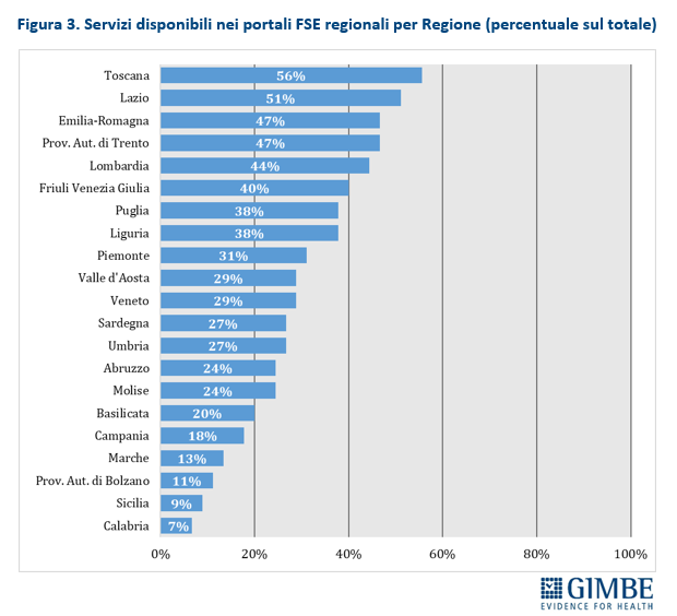 Anche su questo fronte, però, il divario tra Regioni è profondo. Solo la Toscana (56%) e il Lazio (51%) superano la soglia del 50% dei servizi attivati. All’estremo opposto, in Calabria la disponibilità si ferma al 7% (figura 3).