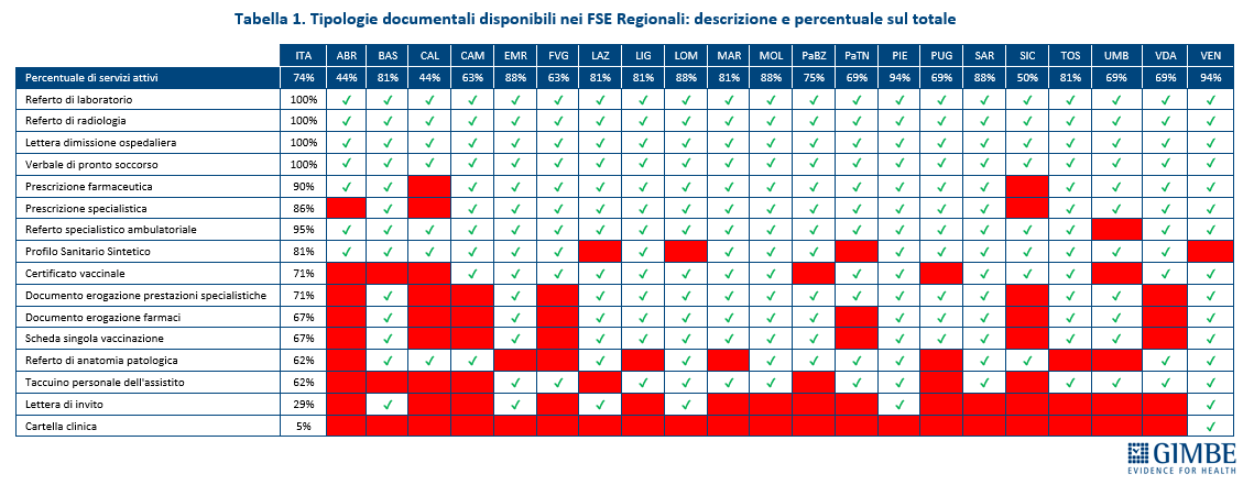 “Un cittadino siciliano e uno veneto – commenta Cartabellotta – non hanno le stesse possibilità di accesso alla propria documentazione clinica. E questo non è accettabile in un Servizio Sanitario Nazionale che si definisce universale”. La disomogeneità regionale è marcata. Alcuni documenti fondamentali – come il profilo sanitario sintetico, le prescrizioni specialistiche e farmaceutiche, il referto specialistico ambulatoriale – sono disponibili in oltre l’80% delle Regioni. Il certificato vaccinale e il documento di erogazione delle prestazioni specialistiche sono presenti in 15 Regioni e Province Autonome (71%), mentre il documento di erogazione dei farmaci e la scheda della singola vaccinazione compaiono nei FSE di 14 Regioni (67%). Il referto di anatomia patologica e il taccuino personale dell’assistito sono accessibili in 13 Regioni (62%). Soltanto 6 Regioni rendono disponibile la lettera di invito per screening, vaccinazioni e altri percorsi di prevenzione, mentre la cartella clinica è resa disponibile nel FSE solo dal Veneto (tabella 1).