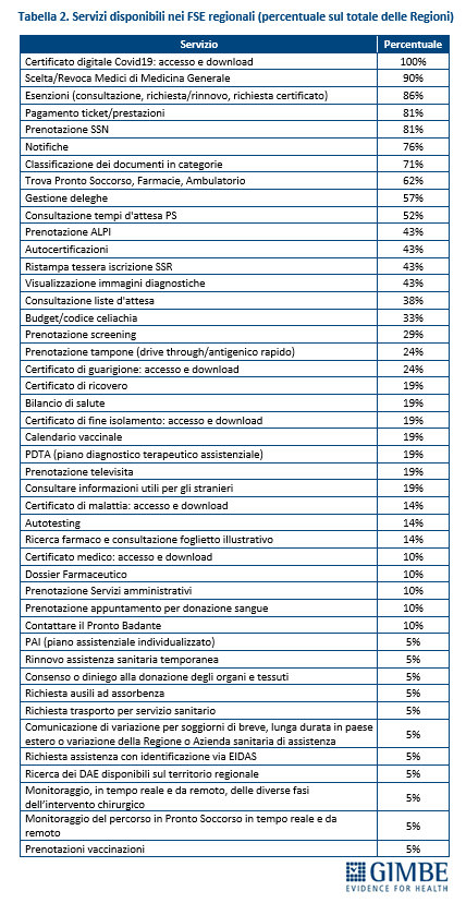 Servizi. Attualmente, i FSE regionali offrono fino a 45 servizi digitali (tabella 2), che permettono ai cittadini di svolgere varie attività fondamentali: dal pagamento di ticket e prestazioni alla prenotazione di visite ed esami, dalla scelta del medico di medicina generale alla consultazione delle liste d’attesa.