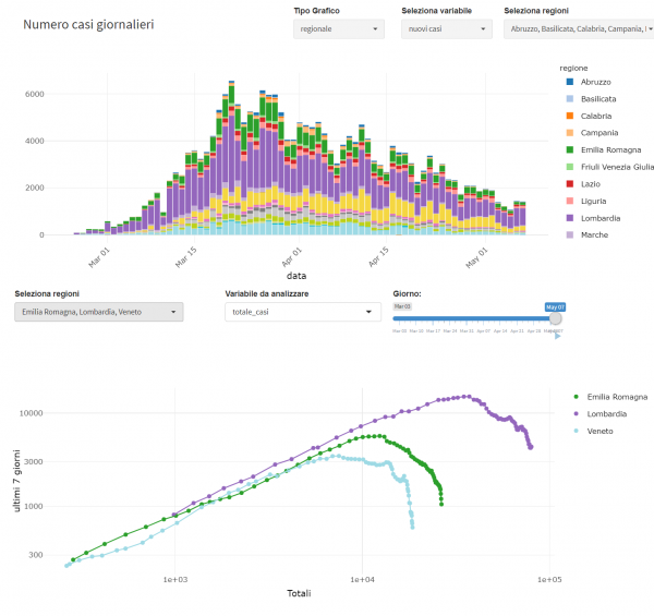 Governo e scienziati lo ripetono ogni giorno: in questa fase sarà fondamentale individuare possibili nuovi focolai su scala regionale e provinciale; l’obiettivo è circoscrivere per tempo le zone a rischio ed isolarle. Una parte della piattaforma è dedicata al monitoraggio su scala locale dei nuovi contagi. Chiunque, infatti, potrà selezionare la propria regione o provincia di interesse e farsi un’idea dell’andamento dei nuovi contagi. Un ruolo importante è giocato dal grafico relativo al tasso di crescita percentuale giornaliero per ogni regione o provincia: diminuito notevolmente dall’inizio dell’epidemia ad oggi grazie al lockdown, sarà fondamentale monitorarlo quotidianamente a livello locale, per capire in individuare le zone con nuovi contagi e intervenire in tempo utile.
