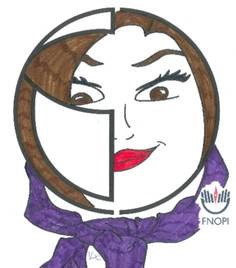 Il simbolo della campagna da utilizzare e l’esempio del suo utilizzo con il viso stilizzato della presidente FNOPI Barbara Mangiacavalli