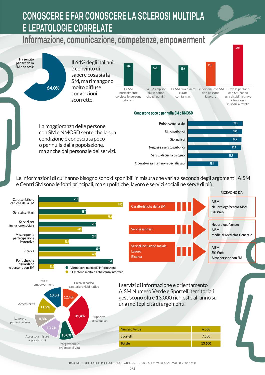 Non è tutto: le nuove terapie approvate da Aifa per la sclerosi multipla e patologie correlate devono essere disponibili senza ritardi in tutto il territorio nazionale presso la rete dei Centri per la sclerosi multipla, deve essere assicurato il rimborso a carico del Ssn e devono essere applicate concretamente le soluzioni previste dal Ddl sulla semplificazione sanitaria e farmaceutica. I pazienti chiedono anche l’abbattimento delle barriere architettoniche, la possibilità di accedere al mutuo, al credito e alle coperture assicurative. Quindi, migliorare la consapevolezza e le competenze degli stakeholder istituzionali, della comunità, dei media, è una delle priorità che Aism cerca di realizzare con il suo lavoro quotidiano di informazione e sensibilizzazione, con le proprie pubblicazioni, come con campagne quale ‘Portraits MS‘, che richiedono di essere portate avanti nel tempo, fatte proprie, promosse e sostenute. Serve però che anche il dibattito pubblico e il sistema dell’informazione si evolva nel modo in cui tratta i temi della sclerosi multipla e della disabilità, superando paternalismi e sensazionalismi, e promuovendo invece l’inclusione che nasce dalle conoscenze corrette, conoscenze che generano competenze. E alimentare le evidenze e i dati concorrendo collettivamente al disegno e aggiornamento dinamico del Barometro della sclerosi multipla. Infine, i pazienti chiedono alle Istituzioni di sottoscrivere la Carta dei Diritti delle persone con sclerosi multipla, traendone ispirazione e contenuti per l’azione concreta e incorporandone i valori per il cambiamento atteso.
