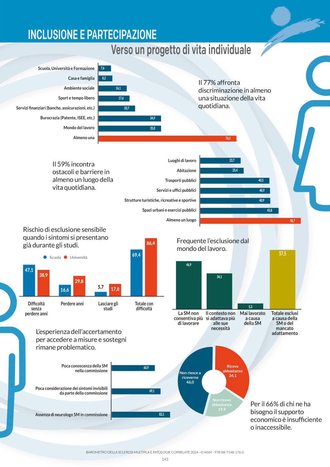 “Il Barometro non è solo un insieme di dati. È il luogo in cui le priorità dell’Agenda sono spiegate e circostanziate dalle singole persone che sono state ascoltate e interpellate. Il Barometro esprime dati utili per orientare gli interventi pubblici e l’attività della nostra Associazione e della nostra Fondazione: l’Agenda delle persone con sclerosi multipla – commenta Mario Alberto Battaglia, Presidente di FISM – è un contributo strategico e operativo dell’Agenda del Paese. Nonostante i progressi compiuti, rimane molto da fare per migliorare la qualità della vita delle persone con SM e dei loro familiari. L’impegno congiunto delle istituzioni, dei professionisti sanitari e delle associazioni dei pazienti è fondamentale per superare queste sfide e garantire un futuro migliore per tutti le persone che vivono questa complessa patologia”. Per Francesco Vacca, Presidente di AISM “sieci anni di conquiste che ci riempiono di orgoglio. Attraverso l’Agenda 2020 e ora l’Agenda 2025, abbiamo risposto ai bisogni di molte persone con SM e patologie correlate, contribuendo a un’Italia più giusta, equa e inclusiva. Il Barometro della SM ha fotografato i cambiamenti realizzati, mostrando come norme, politiche e processi siano stati ripensati. Dieci anni fa, la Carta dei Diritti ha gettato le basi per una società più inclusiva e rispettosa. C’è ancora tanto da fare, ma siamo determinati a continuare a migliorare la qualità della vita delle persone con SM e dei loro familiari”.