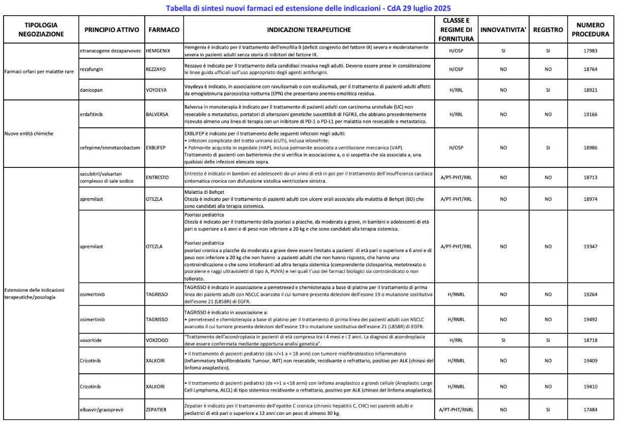 Complessivamente sono 11 i trattamenti che saranno rimborsati dal SSN. Tra questi, altri due farmaci orfani: