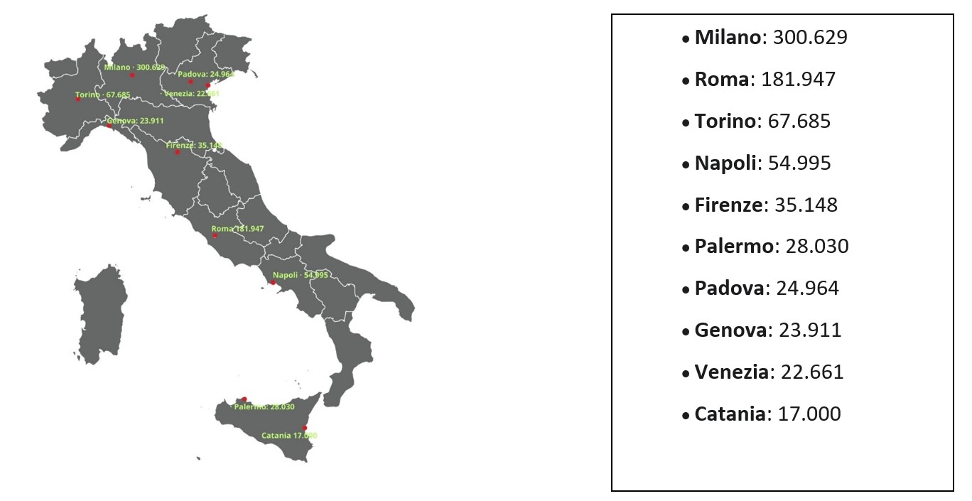 Le 10 città da cui provengono il più alto numero di interessati all’azione collettiva Aria Pulita rientrano tra i 3.384 comuni e città italiane individuate dal team di Consulcesi tra quelli per i quali la Corte di Giustizia Europea ha multato l’Italia per violazione del superamento dei valori soglia di polveri sottili (Pm10) e biossido d’azoto (NO2). In totale, secondo le stime, solo tra le prime 10 città per interessamento sono poco meno di 9 milioni i cittadini che sono stati  costretti a respirare aria cattiva e potenzialmente dannosa per la loro salute e che, per questo, possono richiedere un risarcimento alla Stato, aderendo all’azione collettiva Aria Pulita di Consulcesi.