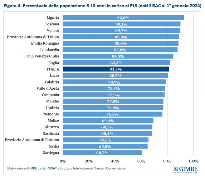 Fasce di età. Sino al compimento del 6° anno di età, i bambini devono per legge essere assistiti da un PLS, mentre dai 6 ai 13 anni compresi i genitori possono optare tra il PLS e il medico di medicina generale (MMG). Al compimento del 14° anno, l’assistito viene revocato automaticamente, salvo nei casi di patologie croniche o disabilità documentate, per i quali è possibile richiedere una proroga fino al compimento del 16° anno. Secondo i dati ISTAT, al 1° gennaio 2024 la fascia 0-5 anni (iscrizione obbligatoria al PLS) comprendeva quasi 2,5 milioni di bambini, mentre nella fascia 6-13 anni rientravano oltre 4,1 milioni di minori, che potrebbero essere iscritti al PLS o al MMG secondo le preferenze dei genitori o, soprattutto, in base alle disponibilità locali di PLS o MMG.