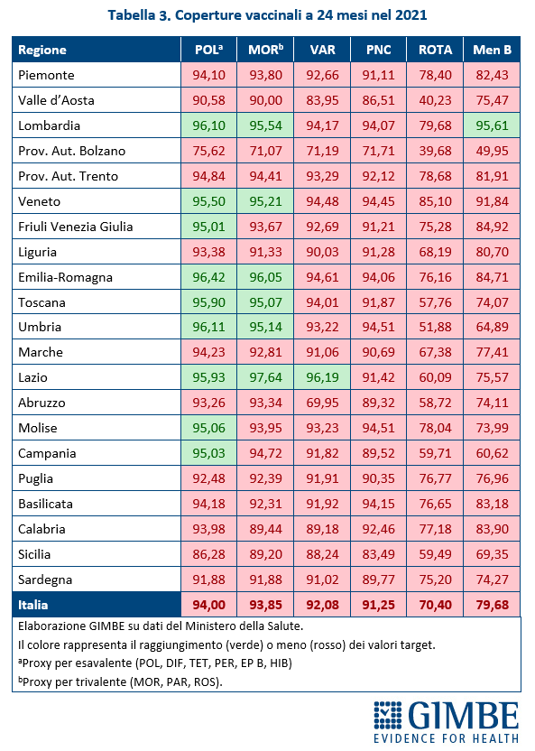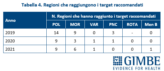 Non sono state analizzate le coperture relative all’anti-meningococco C e all’anti-meningococco ACWY in quanto la raccolta, trasmissione e reporting dei dati risultano eccessivamente eterogenei tra le Regioni.
