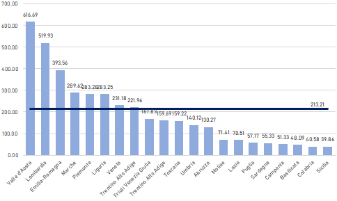 «Nell’attuale fase dell’epidemia si registrano livelli di diffusione del virus molto differenti tra le diverse aree del Paese e dove si sono rilevati i picchi più alti, una volta usciti dalla fase più critica, la guardia dovrà essere mantenuta molto alta – spiegano gli epidemiologi italiani -. Accanto a ciò, si osservano Regioni largamente al di sotto dell’incidenza media nazionale (184 casi ogni 100.000 abitanti) (Calabria 37,8; Sicilia 38,6; Basilicata 45,6; Campania 49; Sardegna 53,3; Puglia 52,2; Molise 65,7; Lazio 68,3;), in cui, quando il lock-down (isolamento generalizzato) terminerà, l’isolamento selettivo dei casi individuati dalla sorveglianza e dei contatti scovati mediante il contact tracing sarà il nodo cruciale per spezzare le catene di trasmissione virale e impedire l’insorgenza di nuovi focolai.