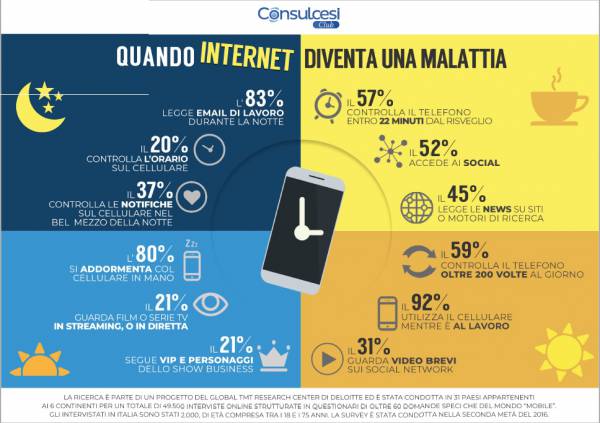«La nuova generazione, quella che viene definita dei ‘nativi digitali’ – spiega il dottor David Martinelli – ha sviluppato un modo di vedere la realtà che è diverso dalla generazione precedente. Internet è un mezzo, quindi in sé non è né buono né cattivo, però è fondamentale che la generazione degli adulti, dei genitori, degli educatori e soprattutto dei medici sia consapevole di questo nuovo modo di vedere la realtà per potersi relazionare correttamente con i giovani, in modo da scongiurare eccessi che possono portare a problemi. Concordare con i ragazzi un periodo di ‘disconnessione’, togliendo lo sguardo dallo schermo del cellulare almeno per un’ora al giorno – conclude Martinelli – consente loro di riappropriarsi di relazioni e rapporti personali, fruendo di esperienze reali senza l’interfaccia artificiale del display».