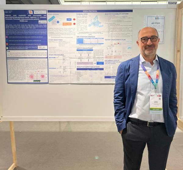 La combinazione di un farmaco solitamente usato per abbassare il colesterolo e un antiepilettico può potenziare la chemioterapia nei pazienti con adenocarcinoma metastatico del pancreas, modificando la biologia del tumore. Questi sono i primi risultati dello studio clinico VESPA, nato un anno fa da una felice intuizione dell’Unità di Farmacologia Sperimentale del Pascale e presentato oggi a Barcellona all’Esmo, il congresso della Società europea di oncologia medica. I dati riguardano i primi 75 pazienti su 240 complessivi.