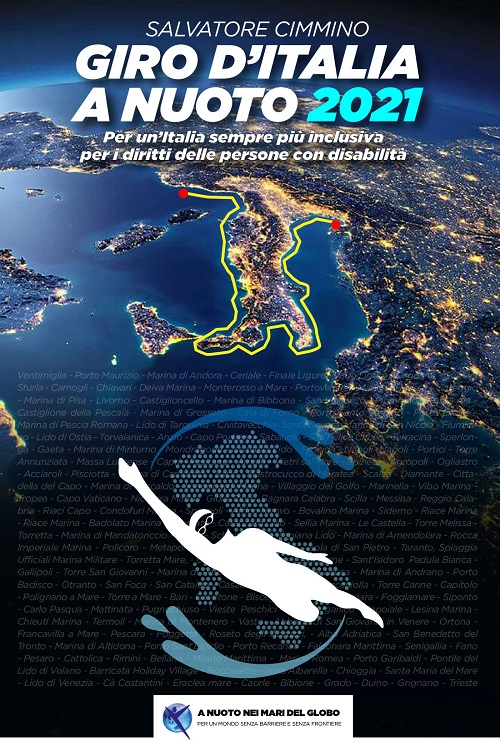 Durante la pandemia ha l’ispirazione giusta: dedicare il 2021 ad una nuova impresa delle sue, un giro d’Italia a nuoto come occasione per parlare dei problemi della disabilità. Quattrodici tappe, da Ventimiglia a Trieste in Piazza Unità d’Italia (per un totale di 289 chilometri) dal 7 maggio al 9 ottobre.