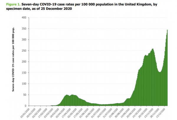 Il Regno Unito (UK) ha dovuto affrontare un rapido aumento dei tassi di casi di Covid-19 nel sud-est, nell’est e nell’area di Londra, associato all’emergere della variante VOC 202012/01. Al 26 dicembre 2020, più di 3mila casi di questa nuova variante, confermati dal sequenziamento del genoma, sono stati segnalati dal Regno Unito. Sebbene sia stato segnalato per la prima volta all’inizio di dicembre, i casi iniziali sono stati identificati in modo retrospettivo come emersi alla fine di settembre. Analisi preliminari indicano che la nuova variante ha aumentato la trasmissibilità rispetto alle varianti circolanti in precedenza, ma finora non è stato identificato alcun aumento della gravità dell’infezione. Dal 26 dicembre, la variante è stata trovata in molti paesi europei (Belgio, Danimarca, Finlandia, Francia, germania, Islanda, Irlanda, Italia, Paesi Bassi, Spagna e Svezia). E nel mondo (Australia, Canada, Hong Kong SAR, India, Israele, Giappone, Giordania, Lbano, Sud Corea, Svizzera e Singapore).